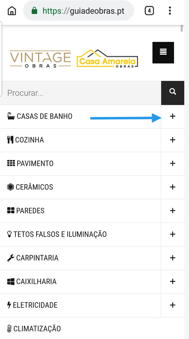 And we cannot go down and see the pages: "moradias tipo" , "outros", "showrooms", "favorites".