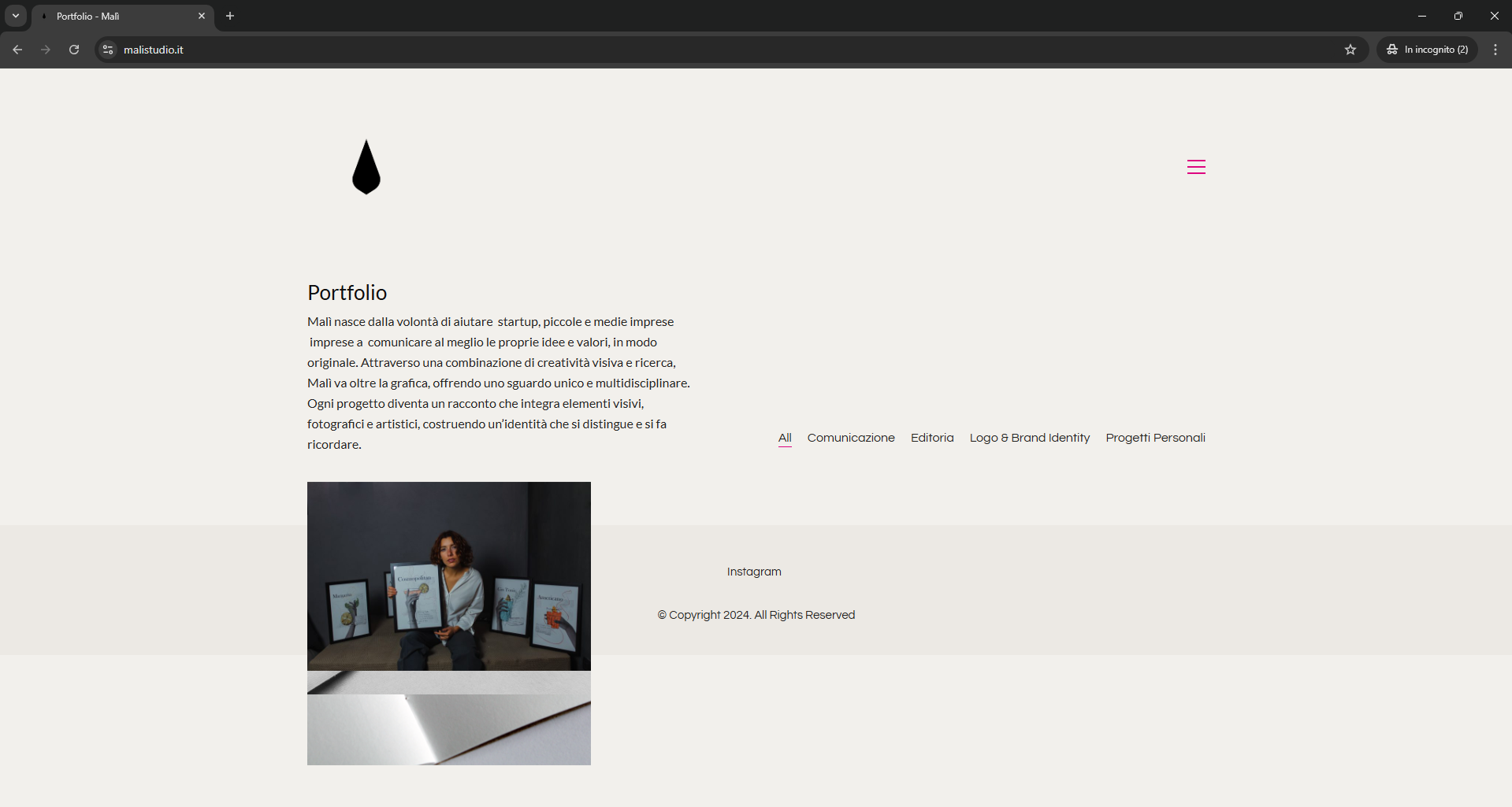 Nella pagina del Portfolio i lavori non vengono caricati e visualizzati nel modo corretto. Soltanto dopo essere passati in un altra categoria, l'impaginazione torna normale.